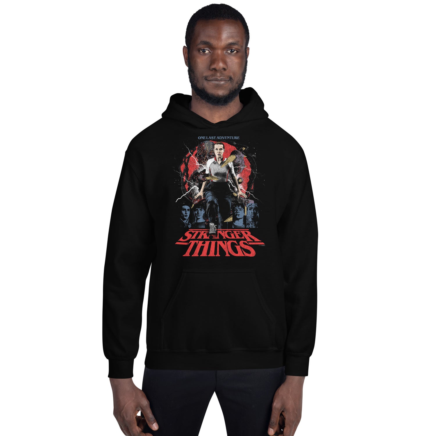 Stay warm for the final hours in Hawkins with the Stranger Things Hoodie Rucking Fotten x Upside Down Pictures. This cozy hoodie features a striking graphic commemorating the promotional fan screenings in select theaters on December 31 and January 1. It's the ultimate collectible gear to see the show off in style, perfect for staying warm, however you may watch the chapter close.