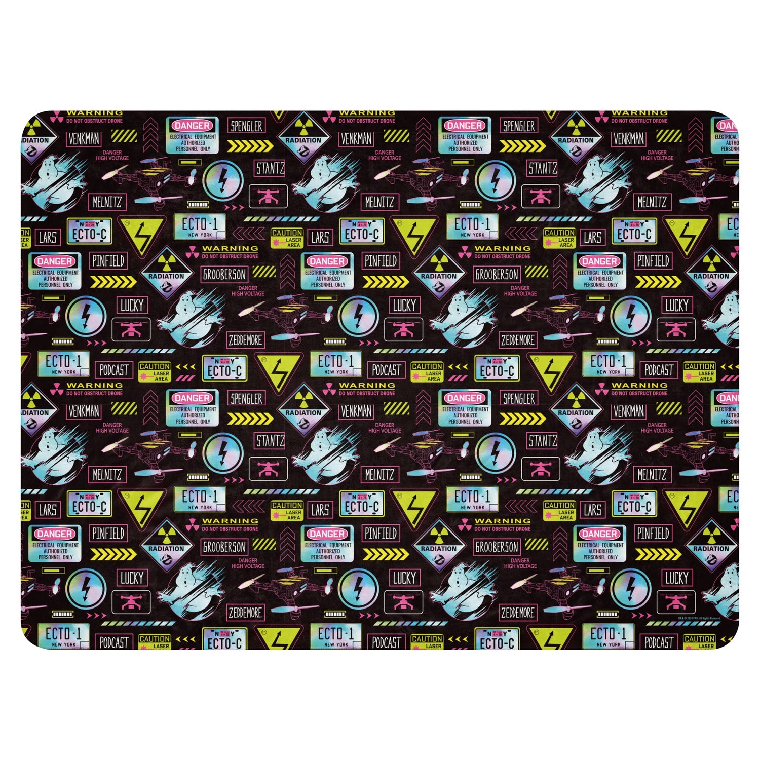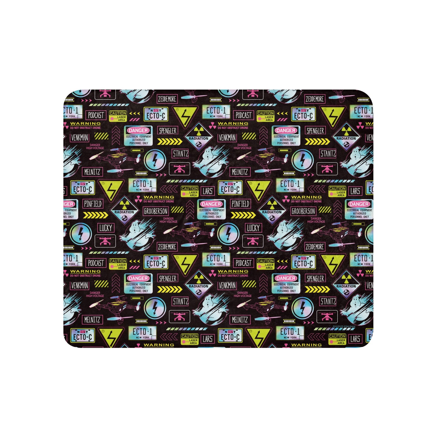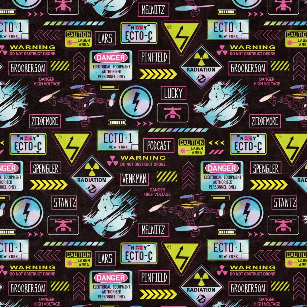 Stay cozy under the watchful eyes of the Ghostbusters: Frozen Empire Gadgets Sherpa Blanket, a soft and warm throw showcasing the gadgets and gizmos that made the Ghostbusters team legendary.