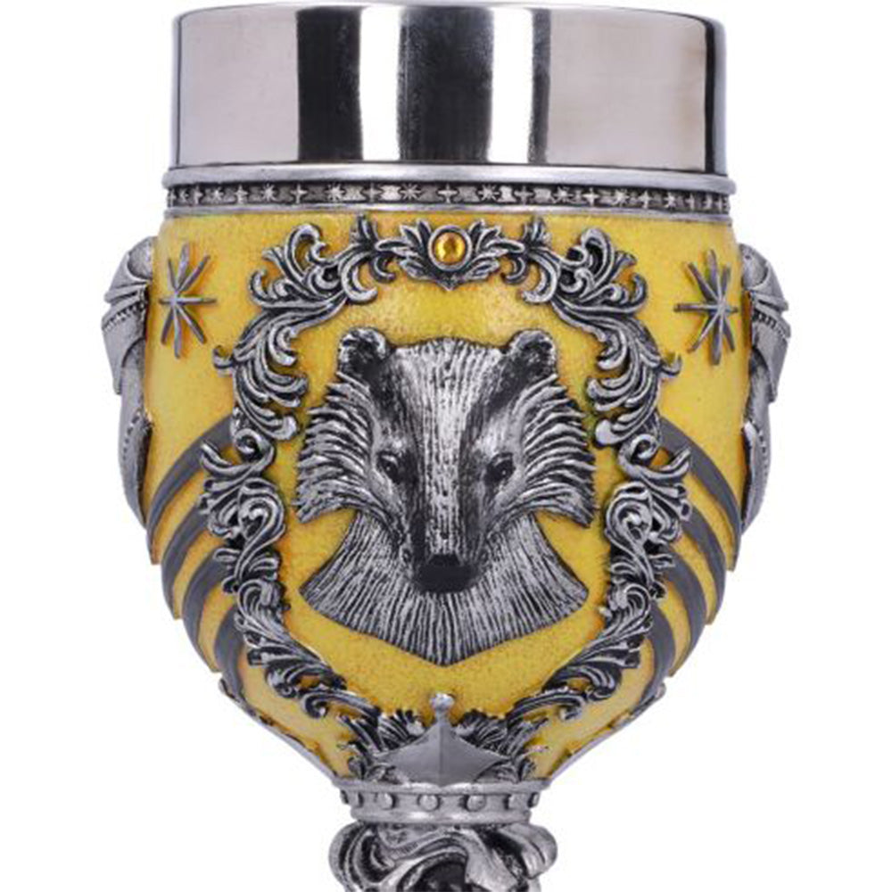 Show your dedication, patience, loyalty, and sense of fair play with this stunning, heavyweight Hufflpuff collectible goblet! Featuring the Hufflepuff badger sigil, this beautifully crafted vessel comes in the Hufflepuff colors of yellow and black. Cast in the finest resin before being expertly hand-painted, this collectible goblet is the perfect addition to your collection as you join Cedric Diggory, Nymphadora Tonks, Pomona Sprout, and Helga Hufflepuff herself in celebrating Hufflepuff!