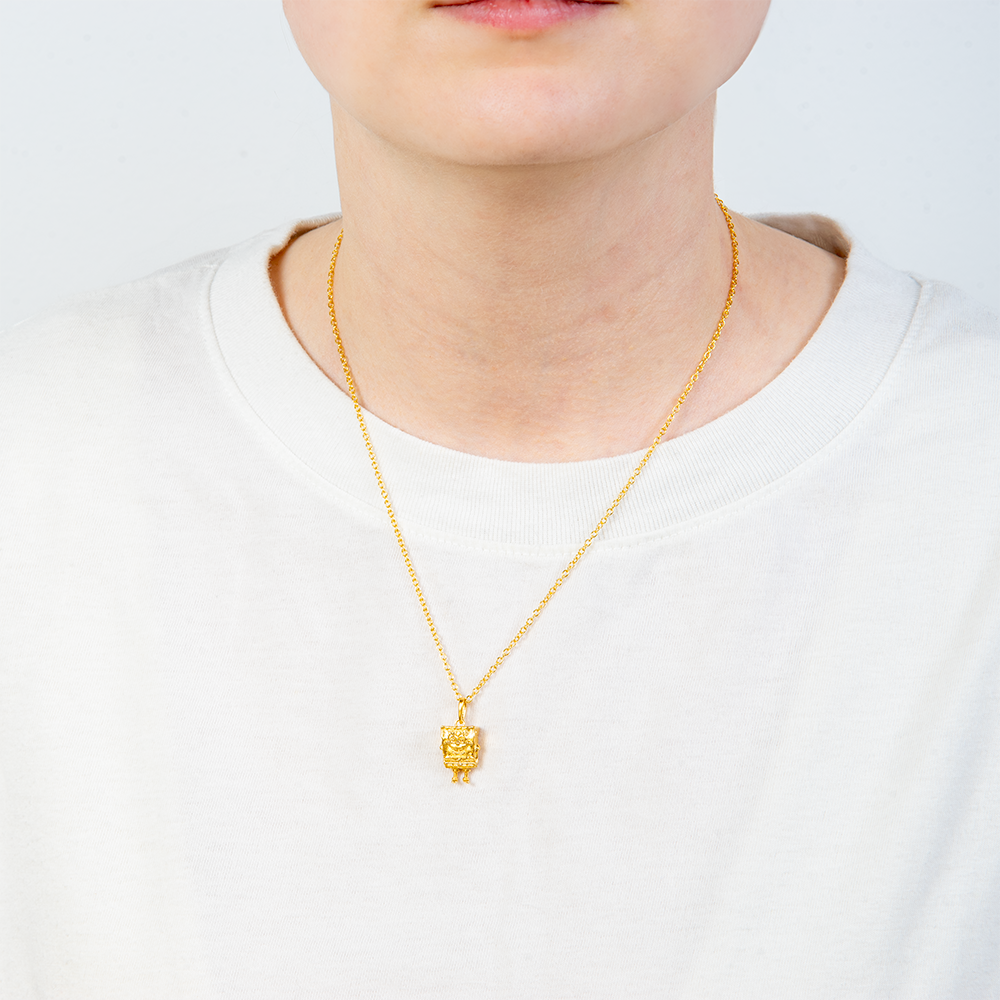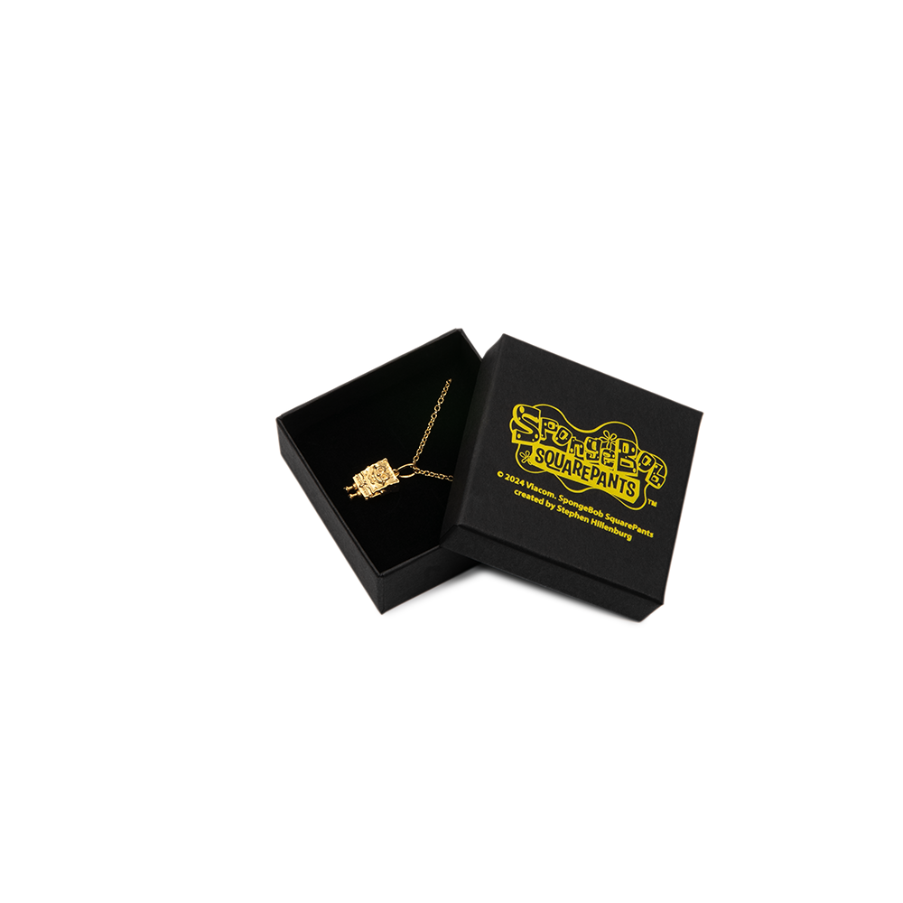 Show off your love for the most beloved sponge under the sea with this charming SpongeBob SquarePants pendant! Crafted in a gold finish, this pendant captures SpongeBob's iconic smile and unmistakable square shape, making it the perfect accessory for any fan of the show. Its detailed design is both playful and stylish, adding a touch of Bikini Bottom fun to any outfit.