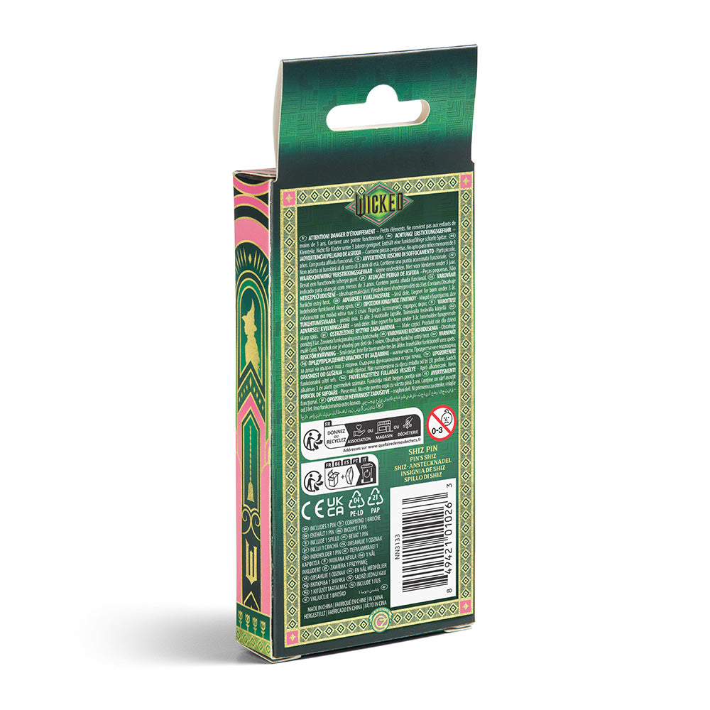 - This collector's pin is an exact replica of the ones the students wear in the Wicked movie. From the antique gold Shiz University logo to the subtle reflective stripes, this pin is not to be missed!